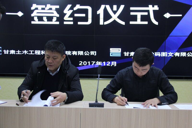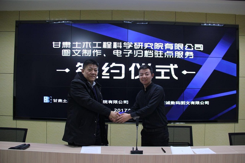 2017年12月19日鄭建軍副院長與甘肅建誠數(shù)碼圖文有限公司負(fù)責(zé)人在我公司學(xué)術(shù)報告會議廳共同簽署了《圖文制作、電子歸檔駐點服務(wù)》合同。