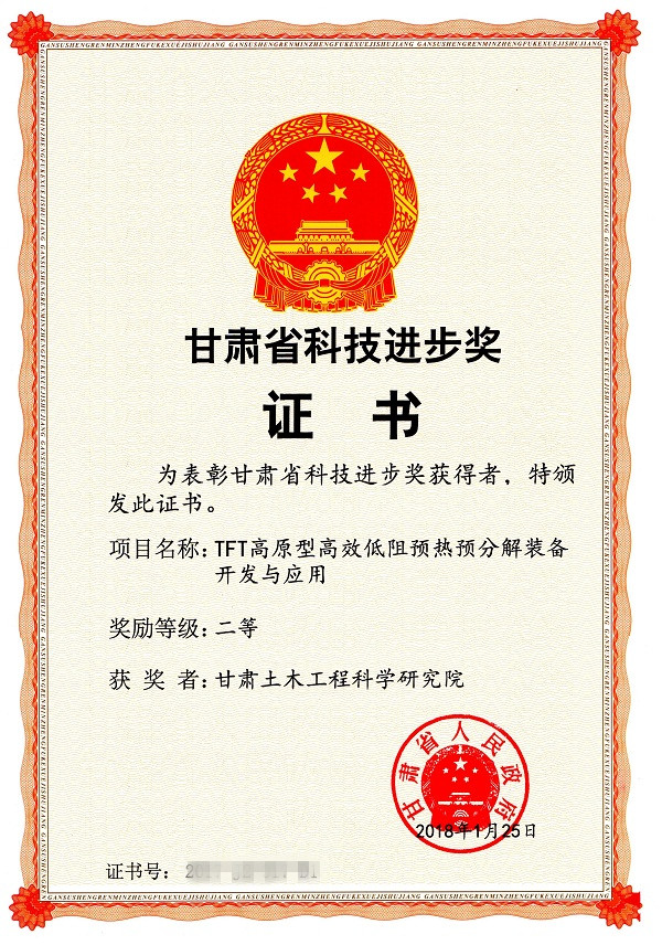 2018年1月17日,甘肅省政府印發(fā)《甘肅省人民政府關(guān)于2017年度甘肅省科學(xué)技術(shù)獎勵的決定》。我院聯(lián)合張掖市山丹鐵騎水泥有限責任公司申報的“TFT高原型高效低阻預(yù)熱預(yù)分解系統(tǒng)裝備與應(yīng)用”項目榮獲2017年度甘肅省科技進步二等獎。
