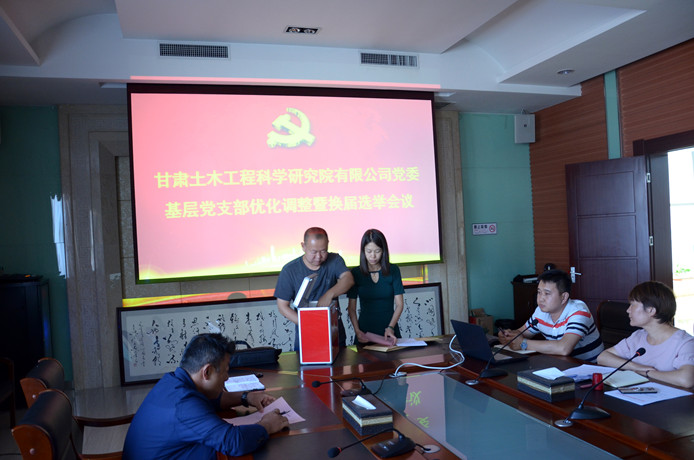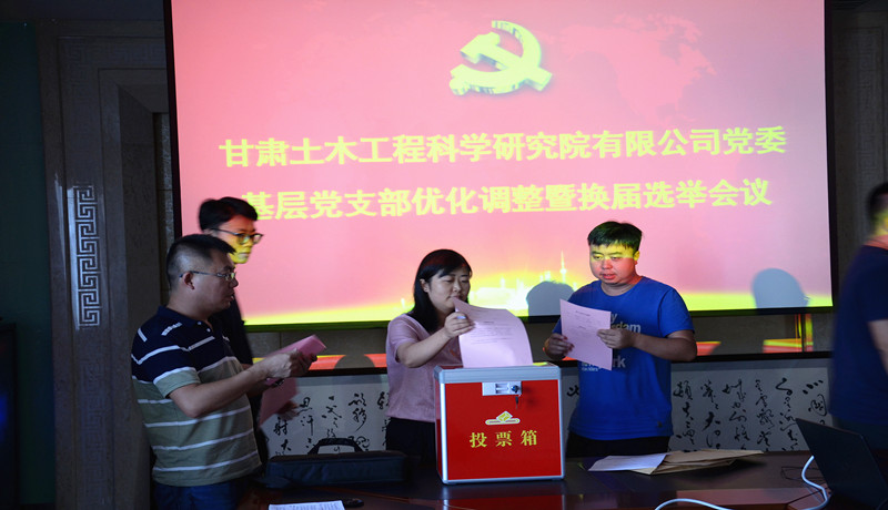 根據(jù)《中國共產(chǎn)黨章程》、《中國共產(chǎn)黨黨和國家機(jī)關(guān)基層組織工作條例》、《中國共產(chǎn)黨基層組織選舉工作暫行條例》相關(guān)規(guī)定,結(jié)合新確定的公司組織結(jié)構(gòu),經(jīng)公司黨委研究,對(duì)公司基層黨支部整合調(diào)整設(shè)置。調(diào)整后設(shè)6個(gè)在職黨支部、16個(gè)黨小組,會(huì)議傳達(dá)了公司《基層黨務(wù)工作者選任及管理辦法》以及《甘肅土木工程科學(xué)研究院有限公司黨委基層黨支部換屆選舉辦法》,介紹了候選人簡況,采用無記名投票的方式選舉出支部書記和支部委員。