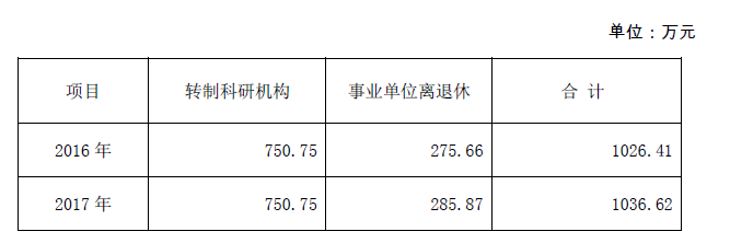 從上表中可以看出轉(zhuǎn)制科研機(jī)構(gòu)經(jīng)費(fèi)保持不變,事業(yè)單位離退休增加了10.21萬元。