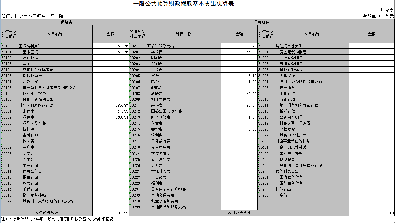 表六:一般公共預(yù)算財(cái)政撥款基本支出決算表