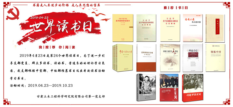 2019年4月23日適逢第24個世界讀書日,為了進一步引導(dǎo)支部黨員、群眾多讀書、讀好書,營造良好的理論學(xué)習氛圍,我支部根據(jù)中宣部、中組部推薦書目選出本次讀書活動學(xué)習書目。