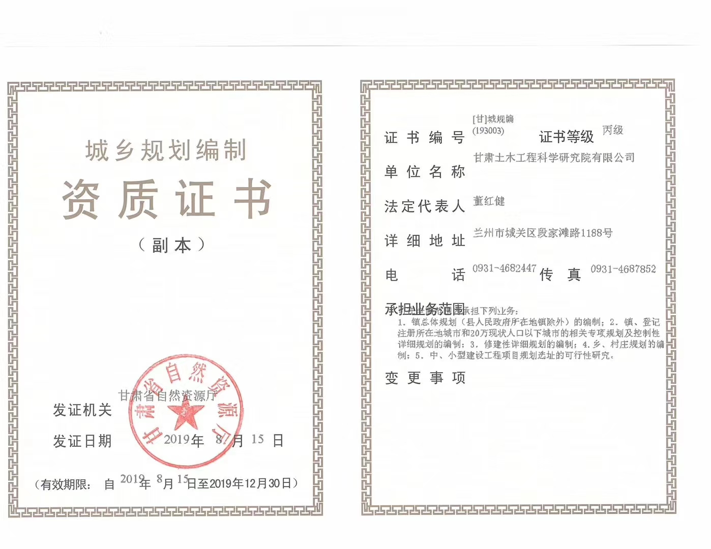 近日,公司建筑工程施工總承包貳級資質(zhì)和城鄉(xiāng)規(guī)劃丙級資質(zhì)獲甘肅省住房和城鄉(xiāng)建設(shè)廳和甘肅省自然資源廳批準,標志著公司資質(zhì)建設(shè)取得重大進展。