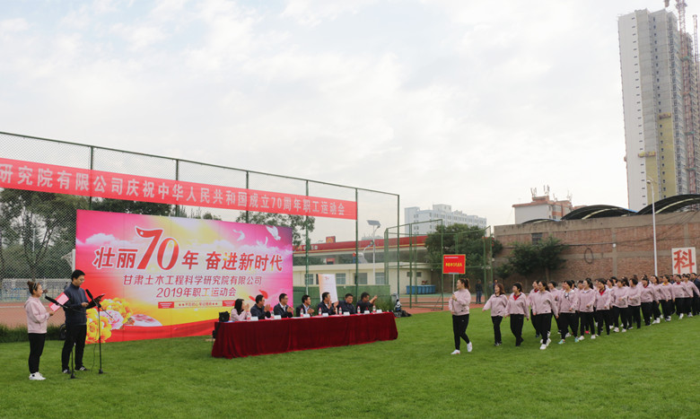 在雄壯的運(yùn)動(dòng)員進(jìn)行曲中,6個(gè)運(yùn)動(dòng)員方陣邁著矯健的步伐入場(chǎng)。開(kāi)幕式在嘹亮的國(guó)歌聲和飄揚(yáng)的五星紅旗中開(kāi)始。首先由集團(tuán)公司黨委委員、紀(jì)委書記師宗正同志代表集團(tuán)公司致辭,向我公司運(yùn)動(dòng)會(huì)的召開(kāi)表示熱烈的祝賀,向土木院全體干部職工表示衷心的問(wèn)候!師宗正指出,集團(tuán)對(duì)土木院未來(lái)發(fā)展寄予厚望。在新的歷史時(shí)期,希望土木院積極實(shí)踐“從區(qū)域上拓寬、在行業(yè)中拓展”的經(jīng)營(yíng)思路,把握發(fā)展契機(jī),在集團(tuán)公司的領(lǐng)導(dǎo)下,牢記初心、勇?lián)姑?,致力于打造全?guó)一流、西北領(lǐng)先的具有鮮明專業(yè)特色、先進(jìn)科研應(yīng)用、雄厚技術(shù)實(shí)力的土木工程咨詢企業(yè)。