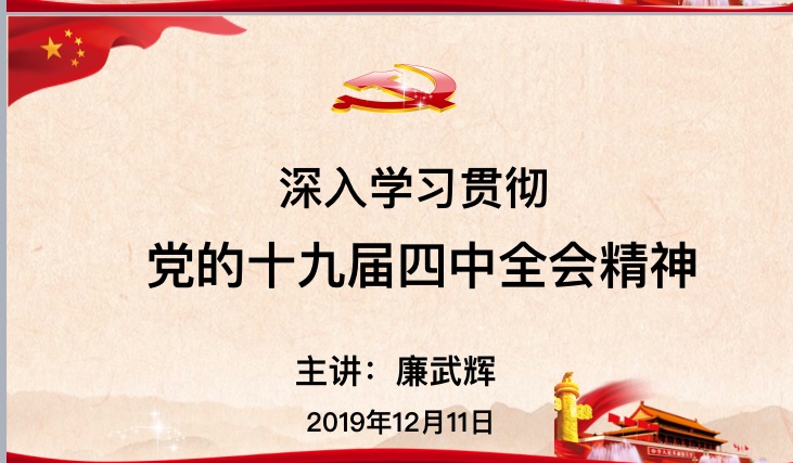 為貫徹落實公司黨委指示精神,12月11日下午,第一、三、四黨支部聯(lián)合開展“深入學習十九屆四中全會精神”的主題黨日活動,邀請西北民族大學馬克思主義學院副教授,碩士研究生導師,形勢與政策教研室主任廉武輝進行宣講。