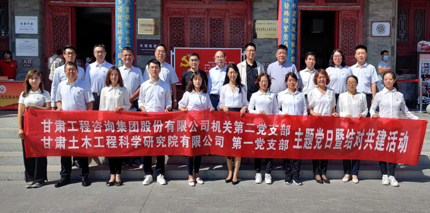 2020年9月4日下午,甘肅工程咨詢集團(tuán)機(jī)關(guān)第二黨支部與公司第一黨支部開(kāi)展了“重溫光輝歷史,傳承紅色基因”主題黨日暨支部結(jié)對(duì)共建活動(dòng)。集團(tuán)股份公司黨委委員、監(jiān)事會(huì)主席焦軍毅,集團(tuán)機(jī)關(guān)第二黨支部書(shū)記柳雷等6名黨員以及公司黨委書(shū)記、董事長(zhǎng)董紅健,黨委副書(shū)記、總經(jīng)理馬靈會(huì),黨委委員、副總經(jīng)理鄭建軍,黨委委員、紀(jì)委書(shū)記張磊和第一黨支部、黨群工作部等17名黨員及入黨積極分子參加了本次活動(dòng)。