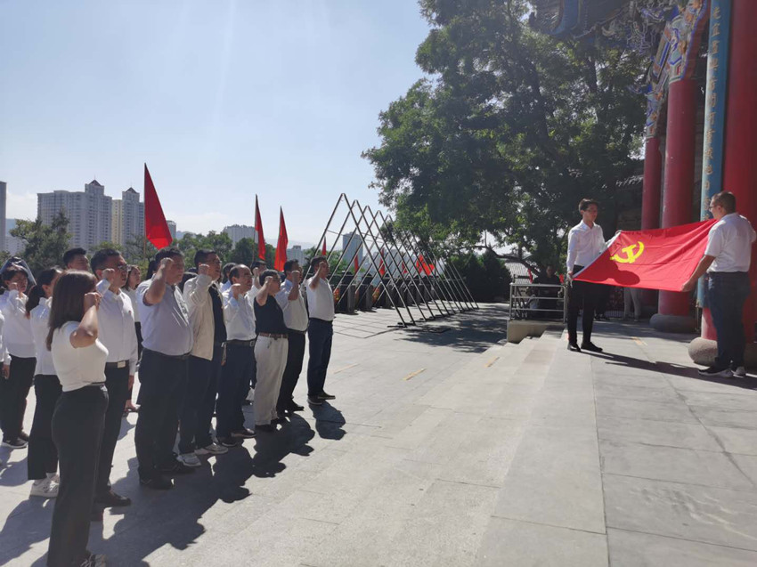 在講解員的引導(dǎo)下,全體黨員參觀了中共甘肅工委紀(jì)念館,重溫黨的光輝歷史,緬懷了革命先烈在艱苦卓絕的條件下視死如歸、勇往直前、無(wú)私奉獻(xiàn)的堅(jiān)定信仰。黨員們面向黨旗重溫入黨誓詞,再憶入黨初心,激勵(lì)自己內(nèi)化于心,外化于行,在本職崗位不忘初心、牢記使命、履職盡責(zé),以實(shí)際行動(dòng)傳承發(fā)揚(yáng)百折不撓的革命精神。