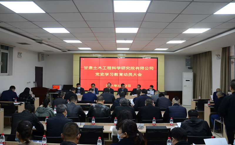 3月12日,公司黨委召開(kāi)黨史學(xué)習(xí)教育動(dòng)員大會(huì),傳達(dá)學(xué)習(xí)習(xí)近平總書記在黨史學(xué)習(xí)教育動(dòng)員大會(huì)上的重要講話精神、全省黨史學(xué)習(xí)教育動(dòng)員大會(huì)精神以及省政府國(guó)資委、集團(tuán)股份公司黨史學(xué)習(xí)教育動(dòng)員大會(huì)會(huì)議精神。黨委書記、董事長(zhǎng)董紅健主持會(huì)議并作動(dòng)員講話,對(duì)公司黨史學(xué)習(xí)教育工作作了安排部署。黨委副書記、監(jiān)事會(huì)主席、工會(huì)主席張磊宣讀了《中共甘肅土木工程科學(xué)研究院有限公司委員會(huì)黨史學(xué)習(xí)教育實(shí)施方案》。公司黨委委員、紀(jì)委委員、各黨支部支部委員和黨員中層干部等參加會(huì)議。