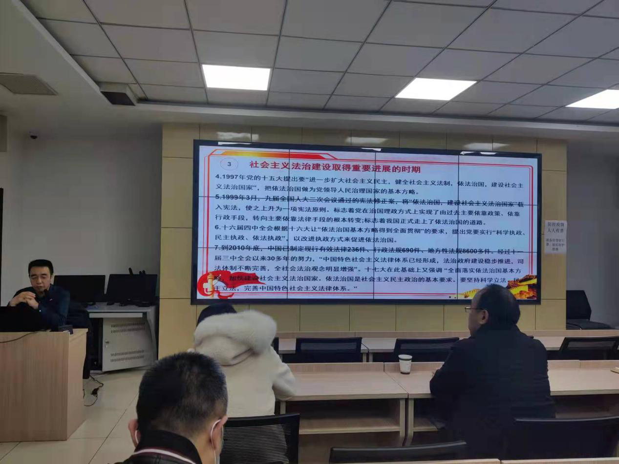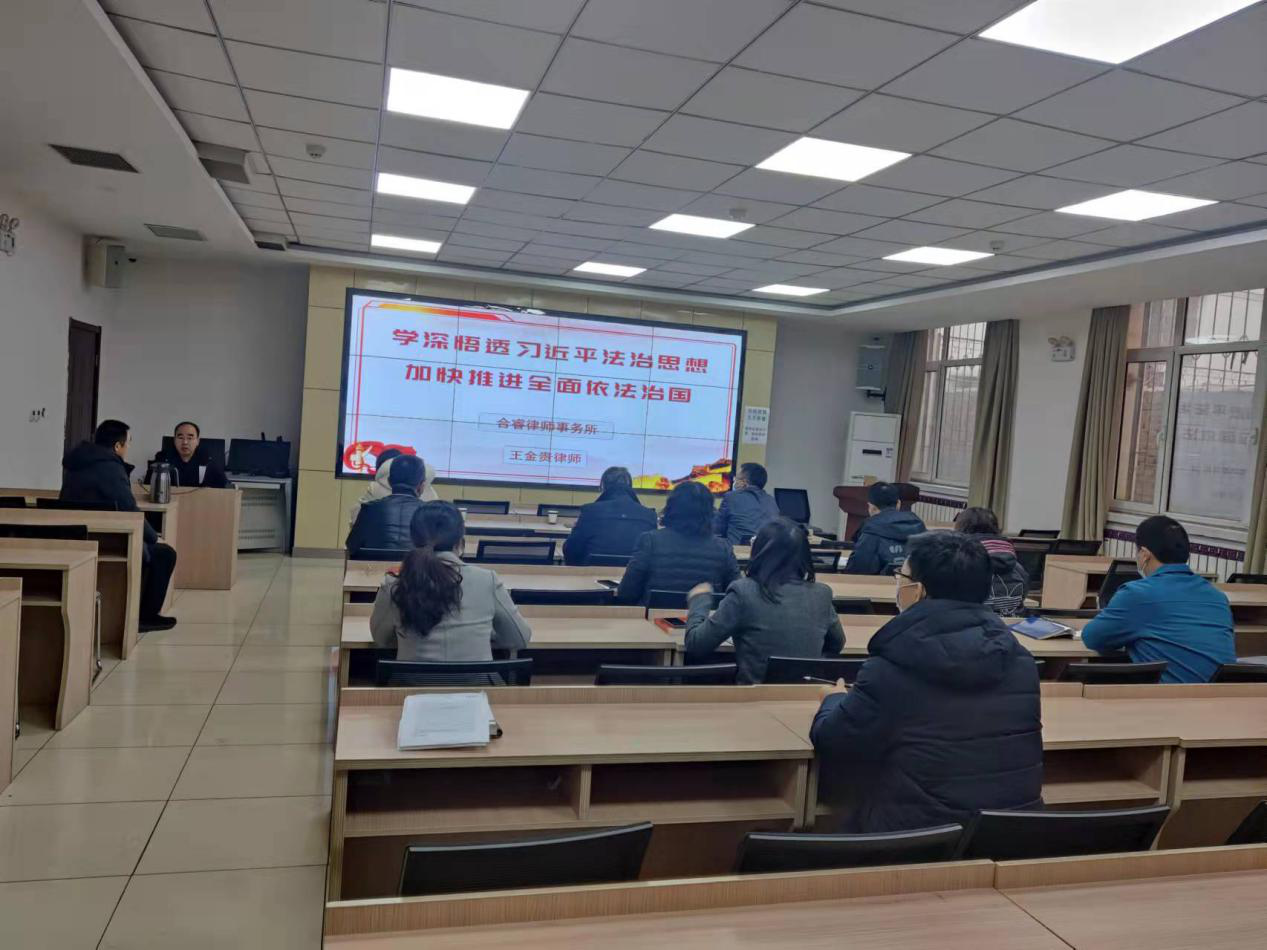 會(huì)議邀請(qǐng)了合睿律師事務(wù)所王金貴律師作《學(xué)深悟透習(xí)近平法治思想》的專(zhuān)題輔導(dǎo)講授。王金貴律師以依法治國(guó)探索的開(kāi)端為切入點(diǎn),以黨的法治建設(shè)歷史為主線,結(jié)合自身的切身體會(huì),深入淺出的對(duì)習(xí)近平法治思想的形成作了全面深入的解讀,習(xí)近平法治思想從歷史和現(xiàn)實(shí)貫通、國(guó)內(nèi)和國(guó)際關(guān)聯(lián)、理論和實(shí)踐相結(jié)合上,深刻回答了新時(shí)代為什么實(shí)行全面依法治國(guó)、怎樣實(shí)行全面依法治國(guó)等一系列重大問(wèn)題。