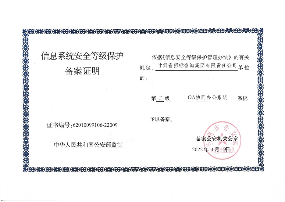 為深入貫徹習(xí)近平總書(shū)記在全國(guó)網(wǎng)絡(luò)安全和信息化工作會(huì)議上的重要講話精神,落實(shí)習(xí)近平總書(shū)記提出的“國(guó)家網(wǎng)絡(luò)安全觀”,有效應(yīng)對(duì)日益復(fù)雜的網(wǎng)絡(luò)安全形勢(shì),針對(duì)各子公司網(wǎng)絡(luò)安全存在的隱患,甘肅工程咨詢(xún)集團(tuán)組織開(kāi)展網(wǎng)絡(luò)安全等級(jí)保護(hù)測(cè)評(píng)工作。