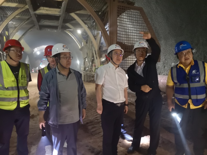 白鑫一行深入工程施工現(xiàn)場及項目駐地,詳細查看了董嶺一號隧道900米處掌子面安全生產(chǎn)情況,檢查了項目駐地檢測試驗室操作規(guī)程、工藝流程落實情況及?;焚A存使用情況,了解了工作人員生產(chǎn)、生活保障情況,聽取了總監(jiān)辦工作匯報。