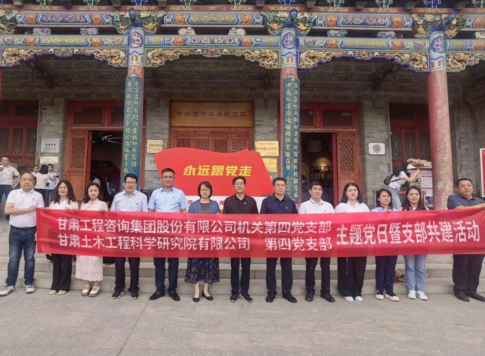 為慶祝中國共產(chǎn)黨成立103周年,7月1日,集團公司機關(guān)第四黨支部與土木工程院第四黨支部赴中共甘肅工委紀念館開展“七一”主題黨日暨支部共建活動。集團公司黨委副書記、董事王春燕,黨委宣傳部(黨群工作部)部長、機關(guān)黨委副書記丁永升,黨委宣傳部(黨群工作部)副部長、機關(guān)黨委書記金生磊,集團公司機關(guān)第四黨支部黨員,土木工程院黨委書記、監(jiān)事會主席、工會主席張磊,黨委委員、紀委書記張健,土木工程院第四黨支部部分黨員及發(fā)展對象參加了本次活動。