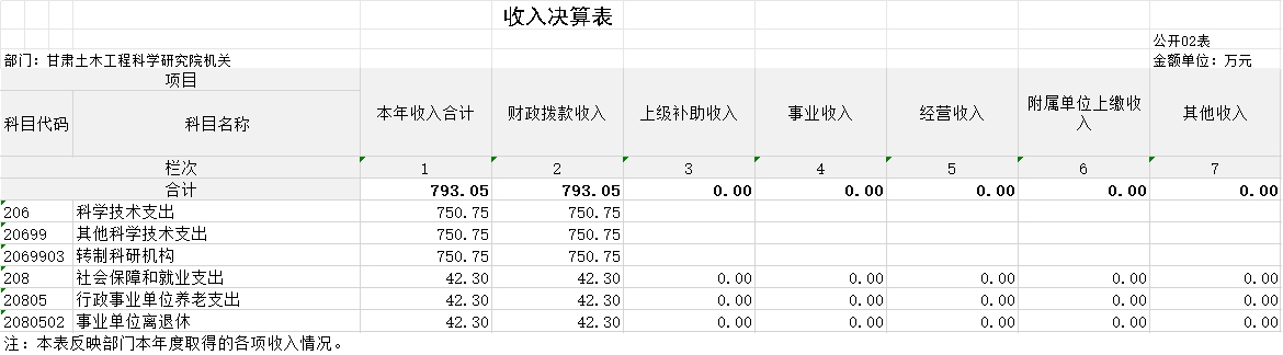 2023年度財(cái)政撥款收、支總計(jì)均為793.05萬(wàn)元。與上年相比,各增加0.94萬(wàn)元,增長(zhǎng)0.12%。主要原因是社會(huì)保障和就業(yè)收、支較上年增加0.94萬(wàn)元。其中:科研機(jī)構(gòu)人員經(jīng)費(fèi)504.88萬(wàn)元,占比63.66%;公用經(jīng)費(fèi)288.17萬(wàn)元,占比36.34%。