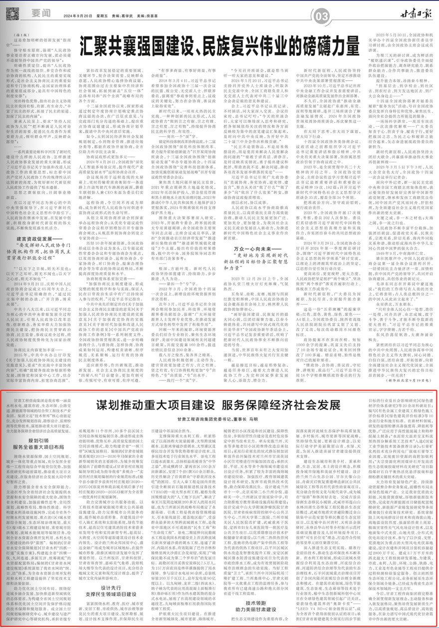 今后,甘肅工程咨詢集團將完整準確全面貫徹新發(fā)展理念,主動服務和融入新發(fā)展格局,聚焦培育發(fā)展新質生產力,以高質量規(guī)劃、高品質設計、高效能服務,在奮力譜寫中國式現(xiàn)代化甘肅篇章中作出新的更大貢獻。