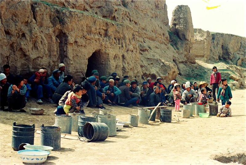 上世紀(jì)70年代,甘肅中部的定西等十多個(gè)縣大旱,數(shù)百萬(wàn)群眾等待政府送水(來(lái)源:甘肅省水利廳網(wǎng)站)