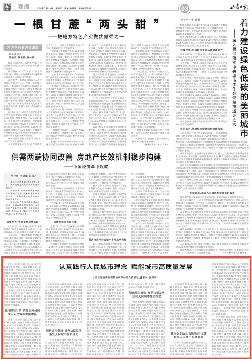 7月14日至15日,中央城市工作會議在北京舉行。這是時隔十年,黨中央再次召開的城市工作會議,為新時代新征程城市工作指明方向。甘肅工程咨詢集團深入學(xué)習(xí)貫徹習(xí)近平總書記關(guān)于城市工作的重要論述,全面落實中央城市工作會議精神,認真踐行人民城市理念,立足區(qū)域發(fā)展實際,將集團公司七十余年技術(shù)積淀轉(zhuǎn)化為服務(wù)人民需求的實踐動能,在優(yōu)化城市空間格局、提升城市功能品質(zhì)、推動綠色低碳轉(zhuǎn)型、賦能智慧高效治理等領(lǐng)域精耕細作,助推全省城市建設(shè)向著高度與溫度并存、發(fā)展與惠民同步的方向邁進。