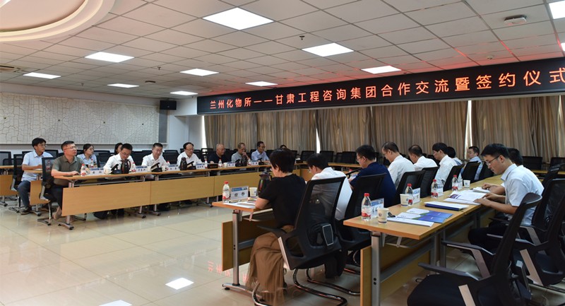 8月15日,甘肅工程咨詢集團黨委書記、董事長張佩峰一行到訪中國科學院蘭州化學物理研究所,與所長周峰座談交流并簽訂科技合作協(xié)議。協(xié)議的簽訂,標志著雙方合作進入新階段。蘭州化物所黨委委員張永勝,集團公司副總經理曹慶,黨委委員、副總經理白鑫參加。
