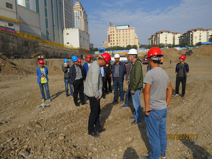 工程總工期913天,預計2019年9月30日竣工。目前工程已完成全部支護樁、冠梁、降水井施工,基坑開挖至項目標高-9m處,預計本月底完成整個基坑開挖與支護工作。